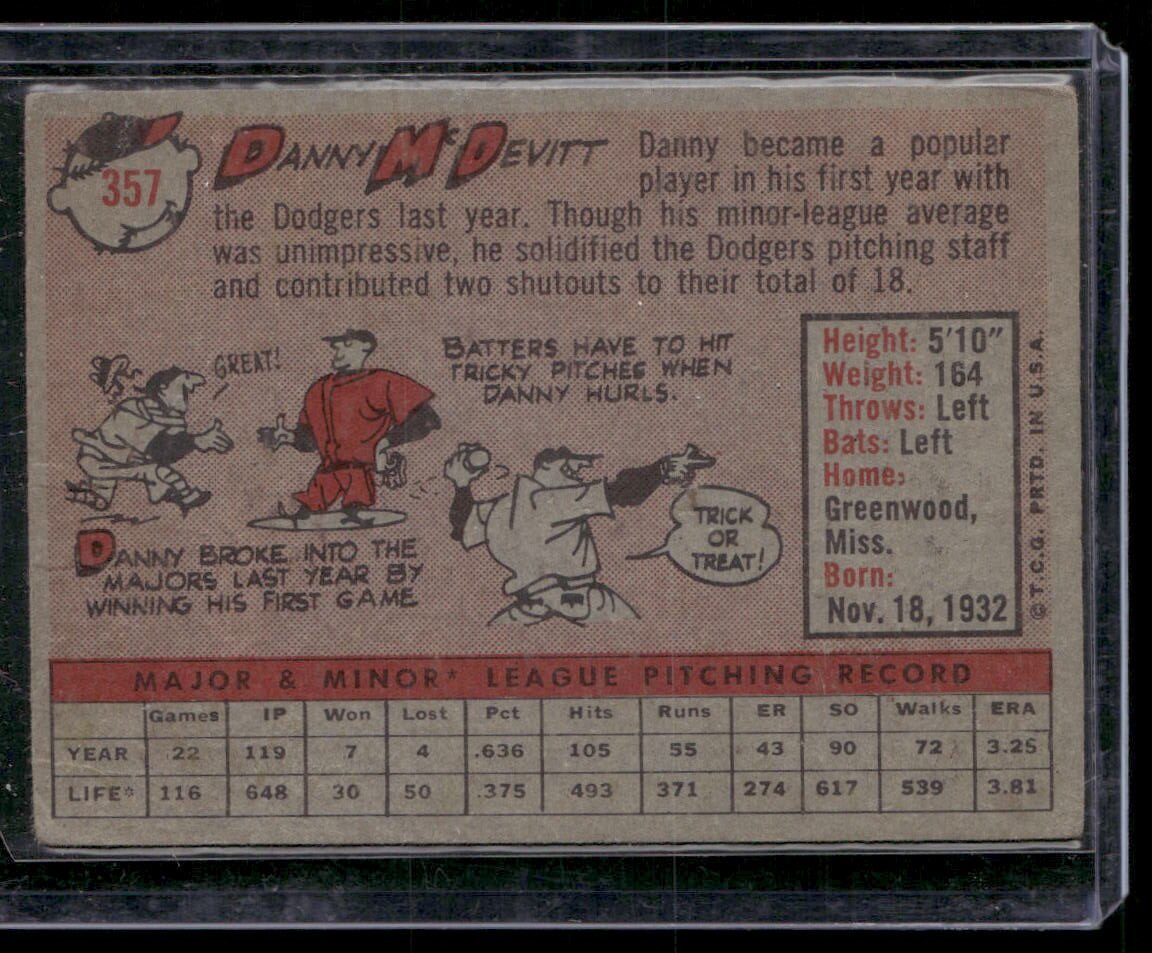 The 1958 Topps Baseball #357 Danny McDevitt card is an iconic piece of baseball history, perfect for enthusiasts and collector aficionados alike. With its timeless design and rich historical value, this card makes a standout addition to any collection.