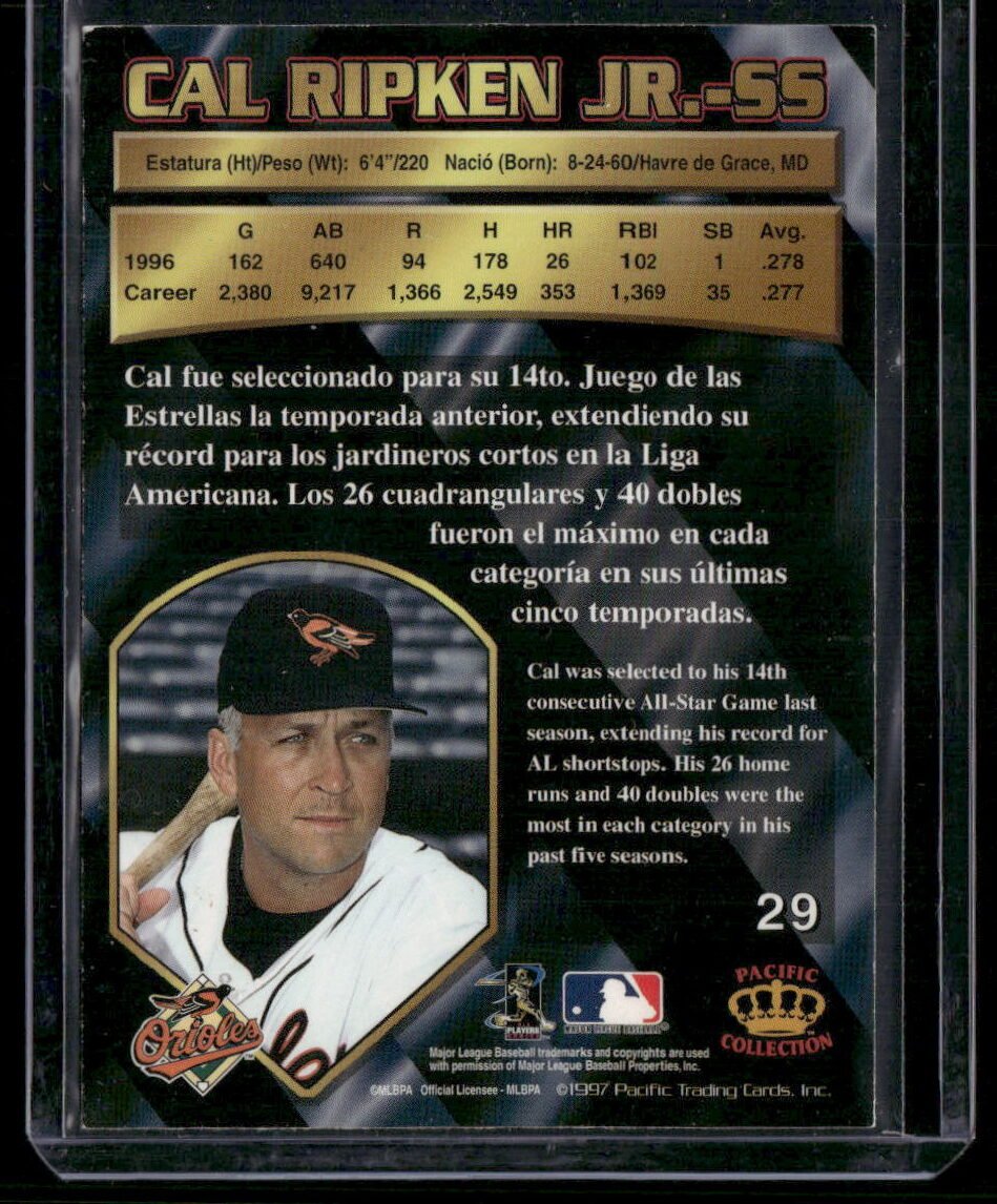 Whether you’re a die-hard Orioles fan, a Cal Ripken Jr. admirer, or a dedicated trading card enthusiast, the 1997 Pacific #29 is an essential collectible. Add this prestigious card to your collection today and hold a piece of baseball history in your hands.